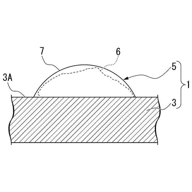 前記芯部の耐火度よりも低い耐火度の第2透明素材で形成され、前記芯部の表面の少なくとも一部を覆う半球状の被覆部と、