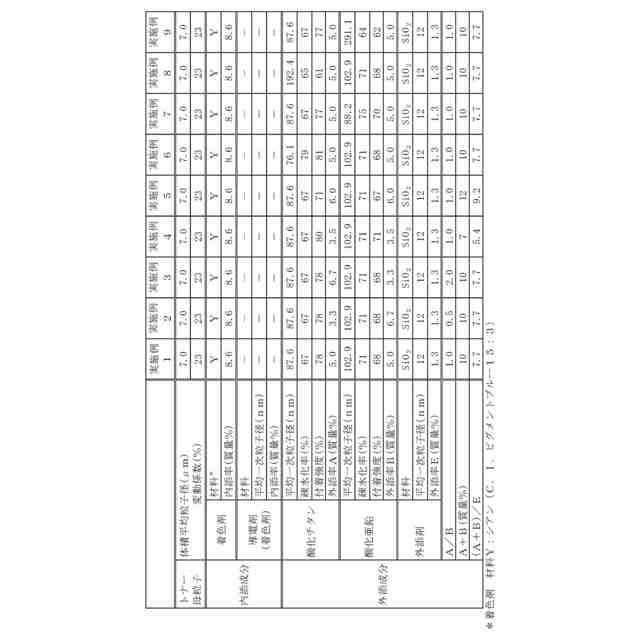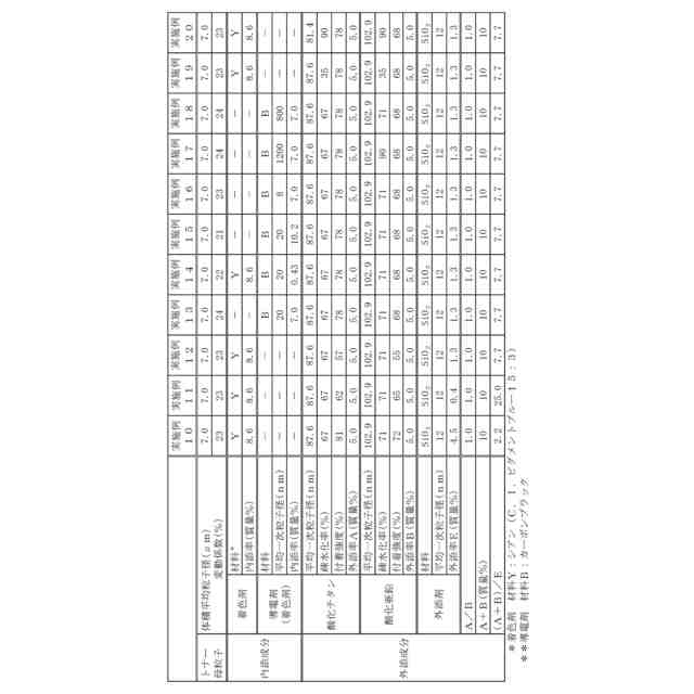 【解決手段】少なくともトナー母粒子と、該トナー母粒子の表面に外添された外添成分とから構成され、前記外添成分が、少なくとも酸化チタン粒子、酸化亜鉛粒子および外添剤を含み、前記酸化チタン粒子および酸化亜鉛粒子が、それぞれ75~200nmおよび80~300nmの平均一次粒子径を有し、前記トナー母粒子に対する前記酸化チタン粒子および酸化亜鉛粒子の外添率をそれぞれA質量%およびB質量%としたときに、式(1):0.5≦A/B≦2.0および式(2):7≦(A+B)≦12の関係を満たすことを特徴とするトナーにより、上記の課題を解決する。