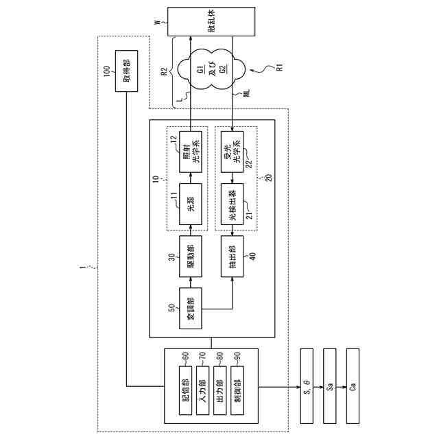 前記被測定領域を少なくとも一部に含む前記照射光の照射領域の距離と前記照射領域に含まれる干渉ガスの量とを含むパラメータを取得する取得部と、