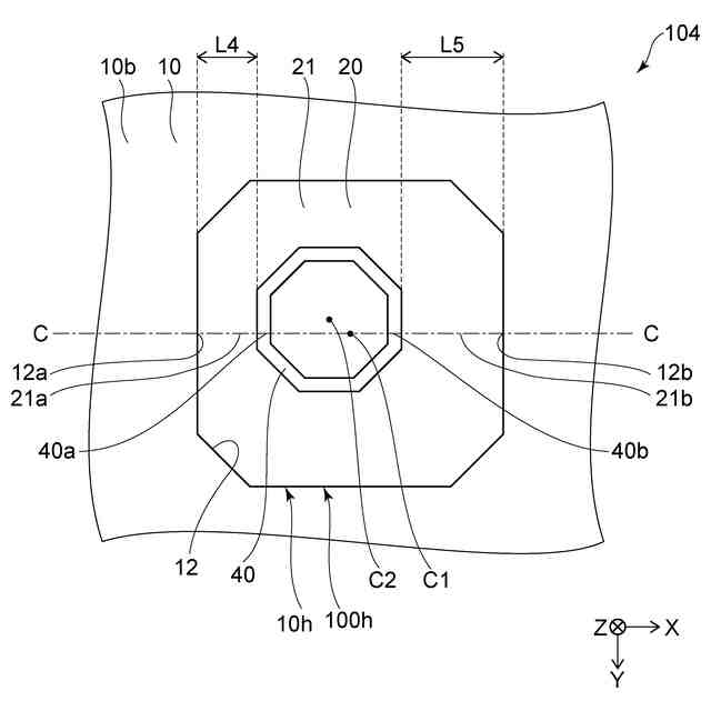 基板10は、基板表面10fと、基板表面10fの反対側の基板裏面10bと、を有する。基板10には、Z方向(第1方向)に延びる第1貫通孔10hが設けられている。第1貫通孔10hは、基板表面10fから基板裏面10bまで延在し、基板10をZ方向に貫通している。例えば、基板10は、導電性を有する。基板10の電気抵抗率は、絶縁層20の電気抵抗率よりも低い。