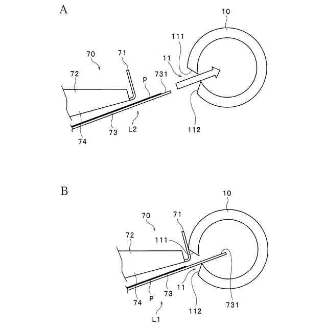 【解決手段】変成器用電線を被覆する絶縁紙を筒状に巻く絶縁紙巻回装置であって、絶縁紙の端部を挟んで回転して前記絶縁紙を外面に巻き付ける回転筒10と、絶縁紙を回転筒10まで案内するガイド部70と、ガイド部70を、回転筒10に接近した第1位置L1と、第1位置L1よりも回転筒10から離れた第2位置L2とに移動させる移動機構とを備える。