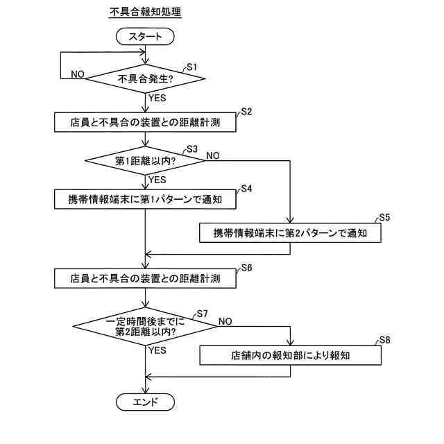 上記一の局面による店舗内位置情報取得システムにおいて、好ましくは、店舗内に設置される複数の機器を備え、制御装置は、無線通信機器と通信装置との近距離無線通信に基づいて、通信装置に対する無線通信機器の位置を算出して、複数の機器に対する無線通信機器の位置を取得する。このように構成すれば、無線通信機器と通信装置との近距離無線通信に基づいて、無線通信機器を保持する店員の店舗内の位置を精度よく取得することができるので、複数の機器に対する店員の位置を精度よく取得することができる。