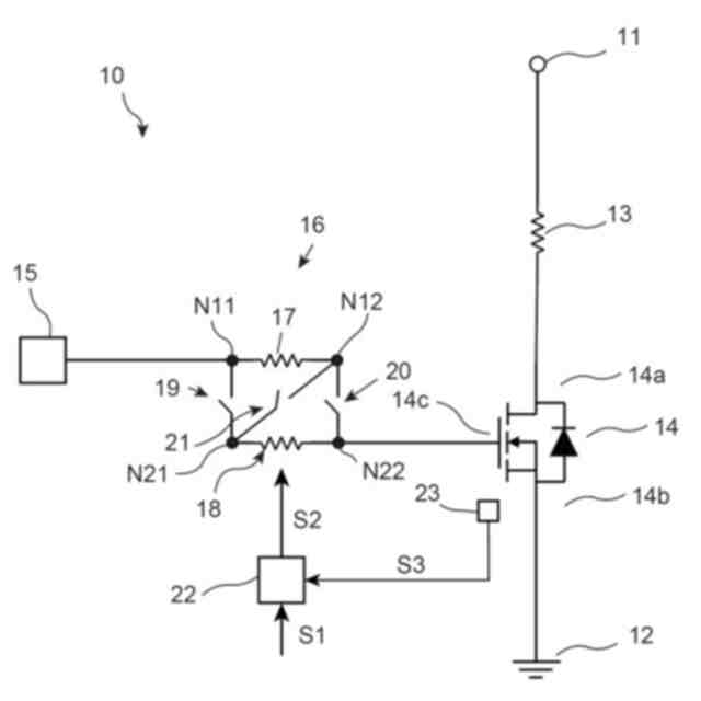 【解決手段】 可変抵抗回路は、第1入力端子および第1出力端子を有する第1抵抗器と、第2入力端子および第2出力端子を有する第2抵抗器と、第1入力端子と第2入力端子の間に接続された第1スイッチと、第1出力端子と第2出力端子の間に接続された第2スイッチと、第1出力端子と第2入力端子の間に接続された第3スイッチと、を備える。第1入力端子は、主スイッチング素子を駆動する駆動信号を生成する駆動信号生成回路に接続されている。第2出力端子は、主スイッチング素子の制御端子に接続されている。