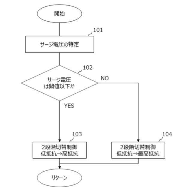 前記サージ電圧が大きいほど、前記第2変化率を小さな値に調整する、