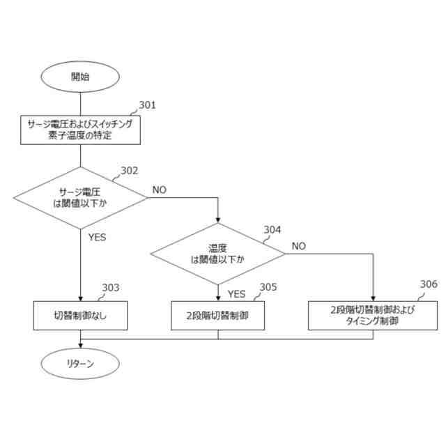 スイッチング素子の2つの主端子間の電圧(以下、「端子間電圧」という)は、接続状態から切断状態に遷移する期間(以下、「遷移期間」という)に、ある変化率で上昇する。端子間電圧の変化時には、遷移期間の端子間電圧が定常状態より瞬間的に増加するサージ電圧が発生するが、端子間電圧の変化率が大きいと、サージ電圧の増大を招く。この変化率が小さいと、スイッチング素子での電力損失の増大を招く。一般に、端子間電圧の変化率は、スイッチング素子の制御端子と駆動信号生成回路との間に接続された抵抗器により調整可能である。