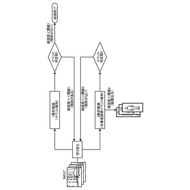 軽いイベント検知用の1層目モデルを本番推論を行う2層目モデルの前に導入し、1層目の軽量なモデルによるイベントの検知結果(評価値)を参照して、必要と判定された場合のみ2層目のモデルの推論を行うことで、2層目推論の頻度を削減し、システム全体での性能、電力効率性が向上させるイベントドリブン型二層推論システムが提案されている。