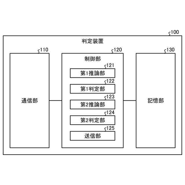 前記判定装置が、前記第1モデルによる処理結果が第1の条件を満たすか否かを判定する第1判定工程と、