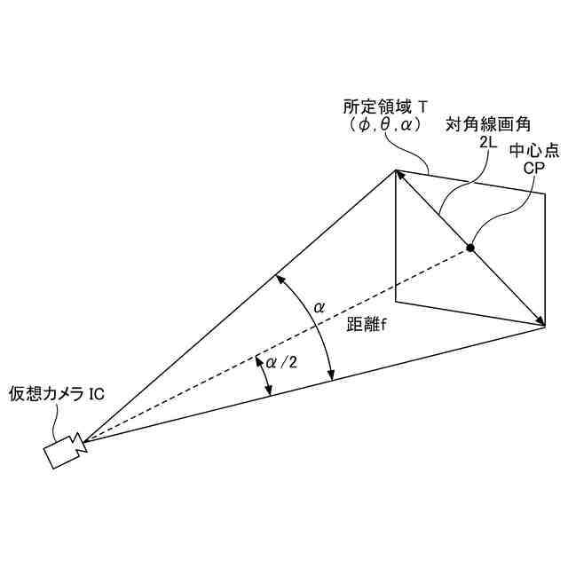 全天球画像を3次元の立体球とした場合の仮想カメラ及び所定領域の位置を示した図である。