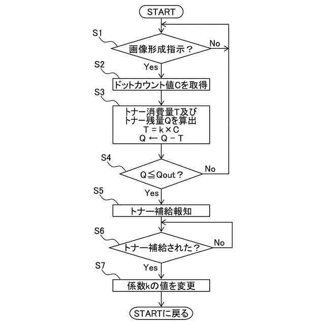 画像形成装置の制御部がトナー収容部におけるトナーの残量を把握する方法として、トナー像が形成される画素の数に基づいてトナーの消費量を算出するドットカウント方式(ピクセルカウント方式とも呼ばれる)がある。しかし、トナーの補給が行われた場合に、ドットカウント方式で算出されたトナーの消費量が実際の消費量からずれるケースがあった。