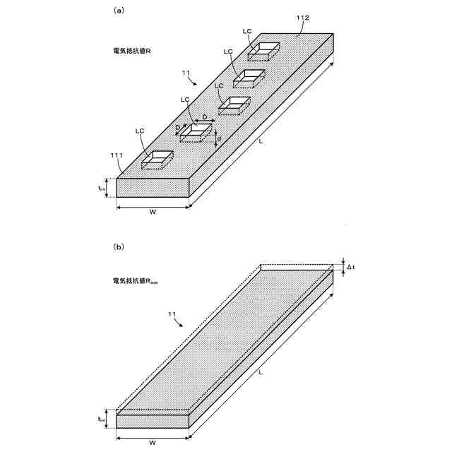 このため、数値解析ステップにおいて、予測した金属片に発生する局部腐食の大きさD’及び個数N’を用いた(設定した)数値解析を行うことで、電気抵抗計測手段によって計測される金属片の電気抵抗値の局部腐食に起因した計測誤差を低減し得る、金属片の幅W、長さL及び初期の厚みt