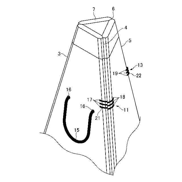 前記第1部材、前記第2部材および前記第3部材のいずれかの上部近傍に固定用紐通し孔が幅方向に所定の間隔をおいて2つ穿設され、