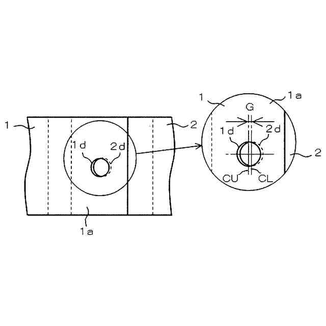 そこで、本発明による木材の連結構造は、一方の木材と他方の木材の端部同士を当接して連結する連結構造であって、前記端部には延出部が形成され、前記延出部の先端に当接突部を形成するとともに、基端に前記当接突部を嵌合して当接させる当接凹部を形成し、前記延出部には、ダボを挿入するダボ孔が板厚方向に形成し、前記ダボ孔は、前記一方の木材の前記ダボ孔に前記ダボを挿入した状態で、前記他方の木材の前記ダボ孔を前記当接凹部側に偏奇させた位置に形成し、前記一方の木材と前記他方の木材の前記ダボ孔に前記ダボを挿入したとき、前記ダボ孔の中心が一致するように前記当接突部を前記当接凹部の方向に変位させて互いに押圧させることを要旨としている。