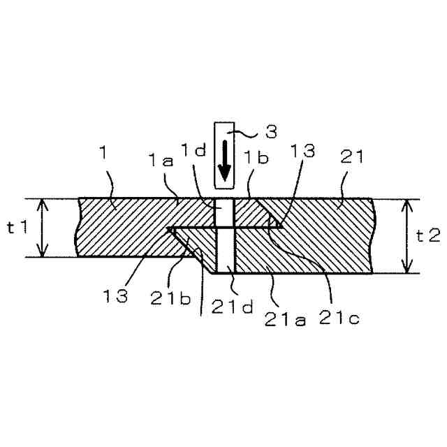 また、前記一方の木材と前記他方の木材の各前記延出部は同形状に形成され、前記延出部は内面を平坦に形成するとともに、前記前記延出部の板厚を前記木材の厚さの2分の1に形成することが望ましい。