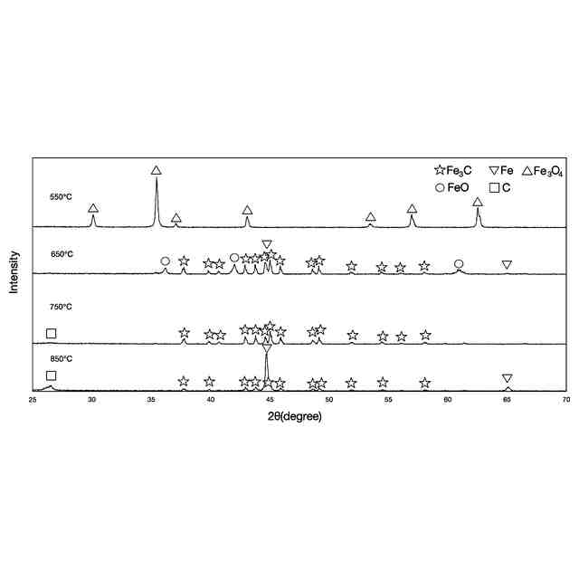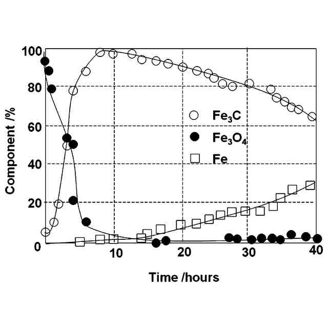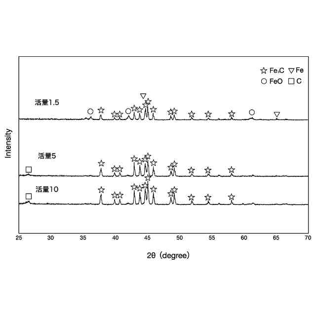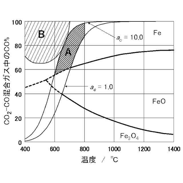ところで、セメンタイトは熱力学的に不安定な準安定物質であるため、セメンタイトの生成に用いられる還元ガスの炭素活量(ac)は1より大きく設定する必要がある。このことは、必然的にセメンタイトの製造過程において、常に炭素が析出する可能性があることを示しているが、前記特許文献1に開示の製造方法をはじめ、これまでのセメンタイトの製造においては、セメンタイトの生成速度を早めるために高炭素活量(例えば、ac=2000以上)の還元ガスが使用されていた。