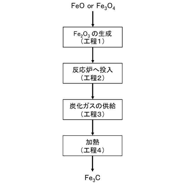 前述した鉄源のうちセメンタイトは、不純物が少ないだけでなくエネルギー消費が少なく、また、非発火性のため貯蔵、及び搬送に際してのコストがかからないという利点がある。従って、セメンタイトは電炉による鉄鋼製造において理想的な鉄源とされており、セメンタイトの工業生産のための研究開発が進められている。