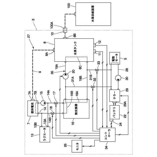 ここで、水素吸蔵合金を用いた水素タンク(水素吸蔵合金タンク)から水素(水素ガス)を放出して燃料電池に供給するときには、例えば60℃以上の温度まで水素吸蔵合金タンクを加熱する必要がある。一方、水素ステーションから水素吸蔵合金タンクに水素を充填するときには、例えば30℃以下の温度まで水素吸蔵合金タンクを冷却する必要がある。このように、水素吸蔵合金タンクは、水素の放出時と水素の充填時とで、それぞれ適正に温度管理を行う必要がある。