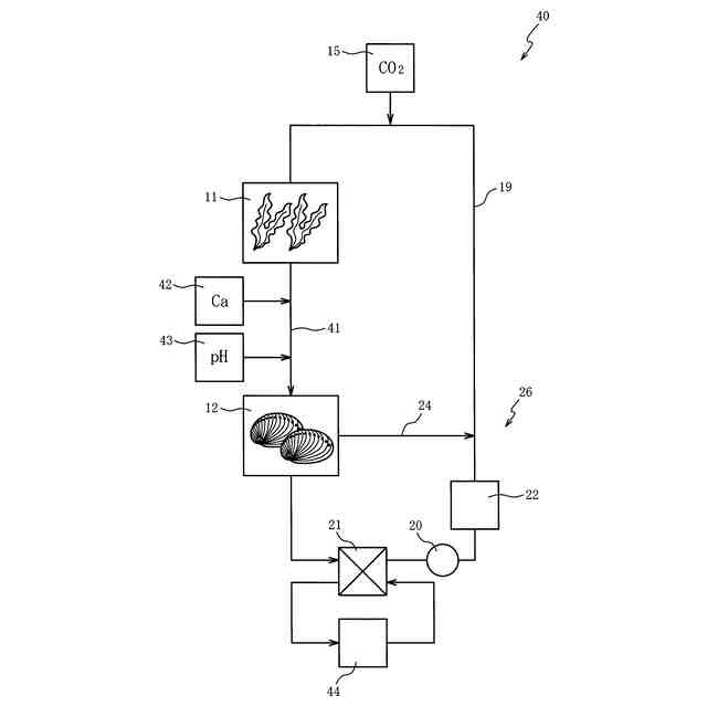 この目的を達成するための第1の態様は、海水を用いて海洋無脊椎動物の餌となる海藻を養殖する餌用水槽と、海水を用いて海洋無脊椎動物を育成する育成水槽と、大気中の二酸化炭素濃度よりも高濃度の二酸化炭素を含むガスを餌用水槽の海水に供給するガス供給装置と、を備える。