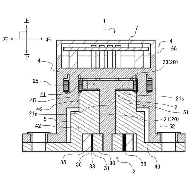 前記孔状連絡部に挿入され芯出しされる芯出しボデー部と、前記芯出しボデー部に連続し前記第2収容室に収容される一般ボデー部と、前記芯出しボデー部と前記一般ボデー部とに貫通形成され前記磁石部と前記インナロータとの間の位置で前記シャフトの軸方向の一部を支持する軸受部と、を有するボデーと、を具備し、