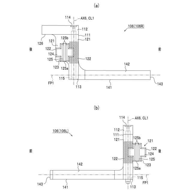 (a)右側の挟持部材の左側面図、(b)左側の挟持部材の右側面図。
