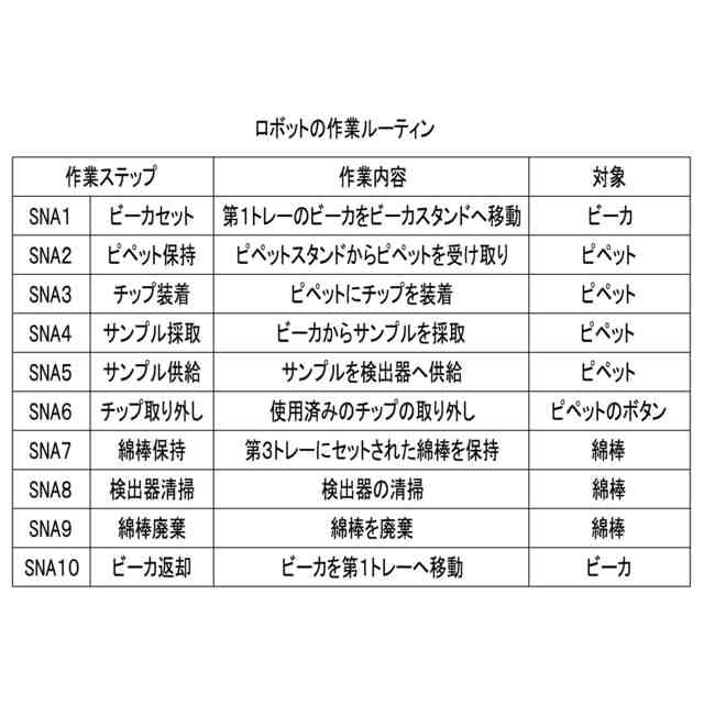 【解決手段】搬送ロボットのアームには、ビーカ等の器具がセットされるトレー500を搬送に際して支持するためのハンド550が装着されている。ハンド550は、トレー500の壁面部503に形成された開口部515に挿入され、当該開口部515に挿入された状態で壁面部503の内面に引っ掛かる鉤部材561と、鉤部材561よりも下側に設けられており、壁面部503の外面に当接することで鉤部材561と壁面部503との引っ掛かり箇所を中心とするトレー500の回動を規制するストッパ部材581とを備えている。鉤部材561を壁面部503に引っ掛けた状態で壁面部503を持ち上げる際に、ストッパ部材581により回動を規制することで、壁面部502の手前側からトレー500を支持する。