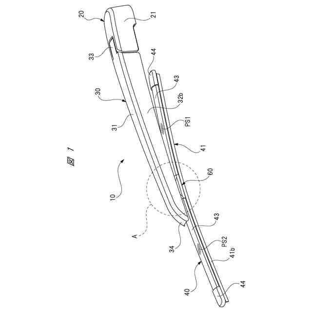 【解決手段】ワイパアーム30およびワイパブレード40は、払拭時に軸心CTを中心に回動角度β度で回動され、ワイパアーム30およびワイパブレード40は、回動角度β度を超えて一方向に回動した時に、互いに突き当てられる第1,第2先端側突当部53a,54aおよび第1,第2先端側傾斜面65a,66aと、回動角度β度を超えて他方向に回動した時に、互いに突き当てられる第1,第2基端側突当部53b,54bおよび第1,第2基端側傾斜面65b,66bと、を有する。