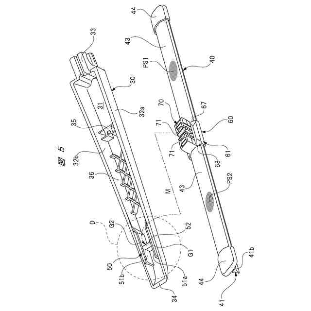 前記ワイパブレードには、前記ワイパブレードの長手方向に延び、かつ前記第2連結部および前記第2突当部が長手方向に並んで配置された連結部材が設けられ、