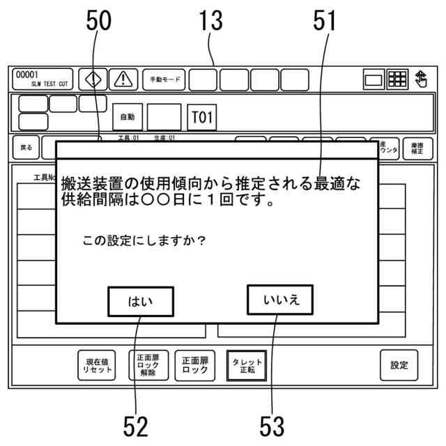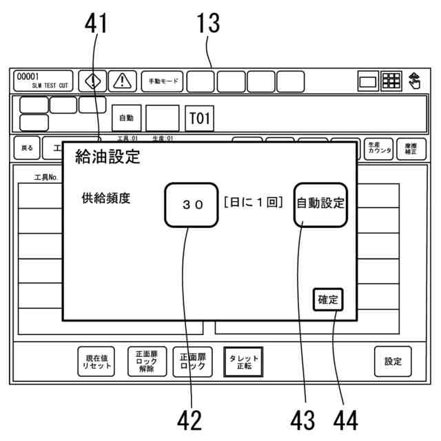 工作機械では、ワーク自動搬送機の劣化を抑制するために給油装置から所定の給油間隔で給油が行われる。しかし、給油間隔が一定だと、例えば、急な生産計画の変更に伴うワーク自動搬送機の使用の増加や、潤滑油の性能のばらつき等に対応させて、給油間隔を柔軟に変更させることができず、機械の劣化を早めるおそれがある。