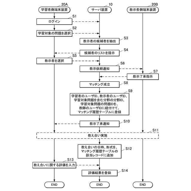 学習支援システムにおいて実行される教え合い処理を示すラダーチャートである。
