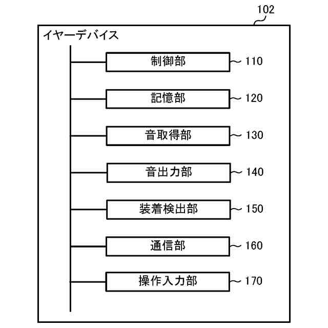 イヤーデバイスの機能構成の一例を示す図である。
