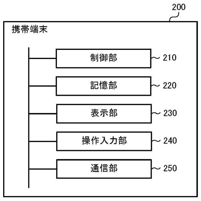 携帯端末の機能構成の一例を示す図である。
