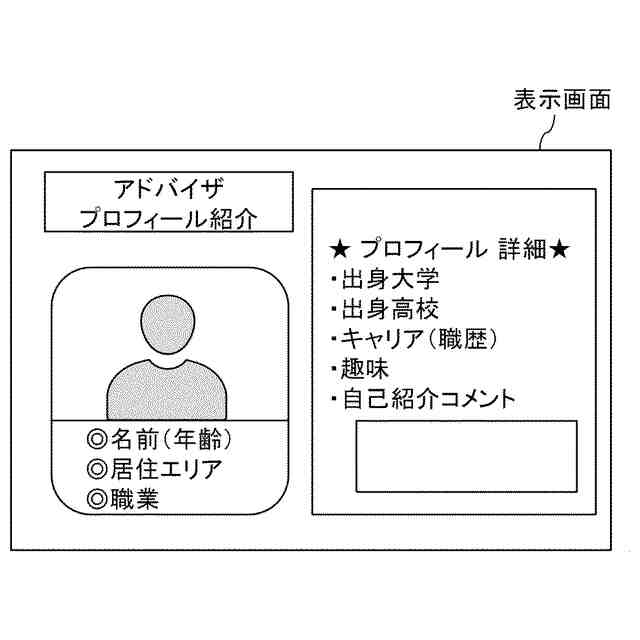 相談サービスにおいて、相談者が多数のアドバイザ(相談員)の中から相談相手となるアドバイザを選択し、選択したアドバイザに相談者が相談するという形式のものがある。このような形式の相談サービスでは、相談者が自身でアドバイザを選択しているが、選択したアドバイザが相談者にとって適切なアドバイザであるとは言えない場合がある。つまり、相談者とアドバイザがマッチしていなかった(合っていなかった)ために、相談者が自身にとって有益な情報やアドバイスをアドバイザから得られず、相談者にとって有意義な相談にならないという残念な結果となってしまう場合がある。