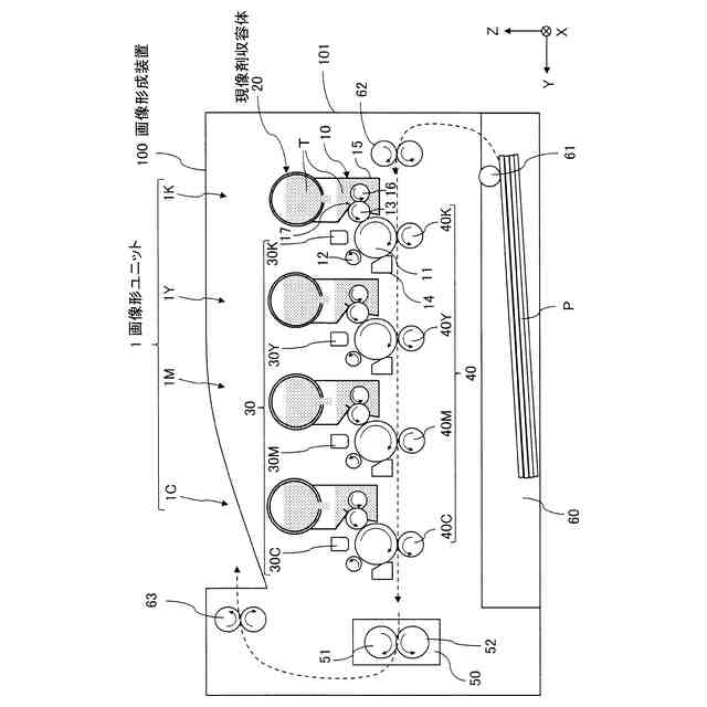 また、図には、図相互の関係を理解し易くするために、XYZ直交座標系の座標軸が示されている。X方向は、現像剤収容体の長手方向であり、Y方向は、X方向に直交する水平方向であり、Z方向は、X及びY方向に直交する高さ方向である。