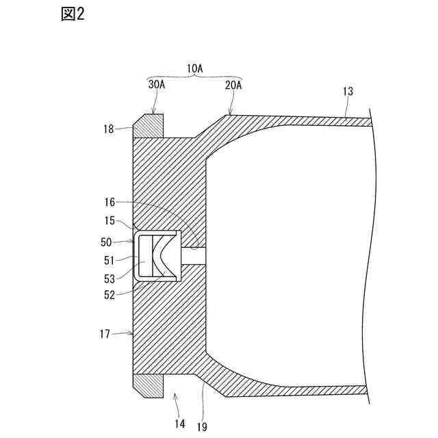 雷管収容部17の外周面の末端からは、ボティ13の左端部と略同一外径のリム18が張り出し、リム18とボディ13との間は、それらより外径が小さい溝部19になっている。溝部19は、溝内側面19Aと溝内側面19Bと溝底面19Cとを備え、ボティ13側の溝内側面19Aがテーパー状になっていて、リム18側の溝内側面19Bと溝底面19Cとの間の角部はピン角状態になっている。また、リム18は、ボディ13から離れた側の外縁角部にテーパー面18Tを備えると共に、リム18のうちボディ13から離れた側の端面とヘッド部14の外側端面14Aとは面一になっている。