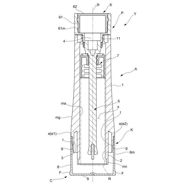 前記本体が、筒状をなし前記キャップの装着時においても外方に露出する外周面を有した本体基部を備えたものであり、