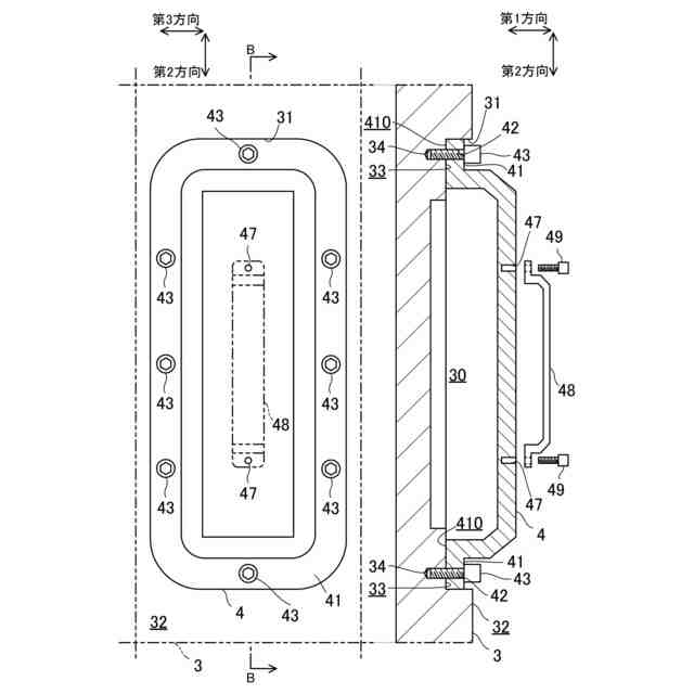 図3は変形例に係り、左図は、本体に対して固定されたカバーを示し、右図は、左図のB-B断面図である。
