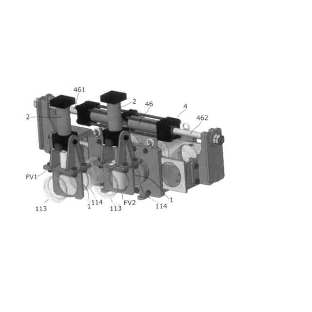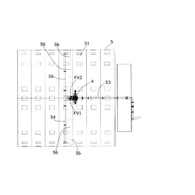 本第2発明のコンクリート分配装置では、前記コンクリート用流量調整弁(FV1,FV2)を一対設けて、各コンクリート用流量調整弁(FV1,FV2)を、トンネルセントル(5)の外周周りに形成されたコンクリート打設空間(S)の左右部(S1,S2)にそれぞれ開口するコンクリート供給管(54,55)に介設し、前記左右部(S1,S2)のコンクリート高さを検出して当該コンクリート高さを均等にするように前記各コンクリート用流量調整弁(FV1,FV2)の弁体(23)を移動させる制御装置を設ける。