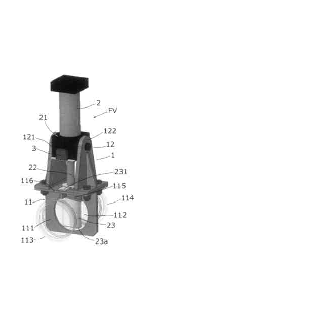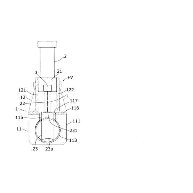 【解決手段】直線移動可能な弁体23と、当該弁体23を直線方向へ正逆移動させてコンクリートの流量を調整する油圧シリンダ2と、当該油圧シリンダ2側に設けられたレーザー距離センサ3とを備え、レーザー距離センサ3に弁体23に設けた金属片231を対向させて当該金属片231が弁体23の直線移動に伴ってレーザー距離センサ3との対向距離を変え、これによって弁体23の開度に応じたレーザー距離センサ3の出力信号を得るように構成されている。