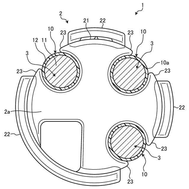 それぞれの前記保持溝は、前記保持体の側方に向けて開口しており、かつ前記保持体における軸方向の一端から他端まで延在しており、