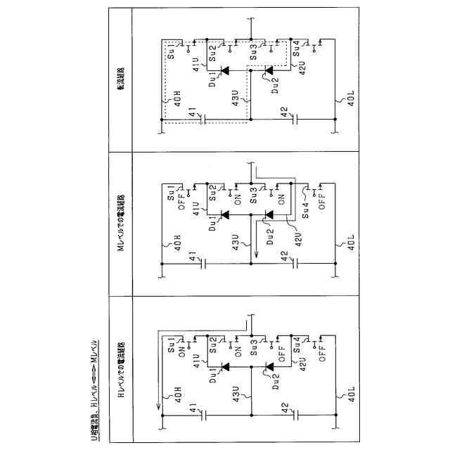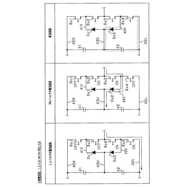 複数の前記電圧のうち中間レベルの電圧が選択された場合に前記スイッチ部に流れる電流を整流する複数の整流部(Du1~Du6,Dv1,Dv2,Dw1,Dw2)と、