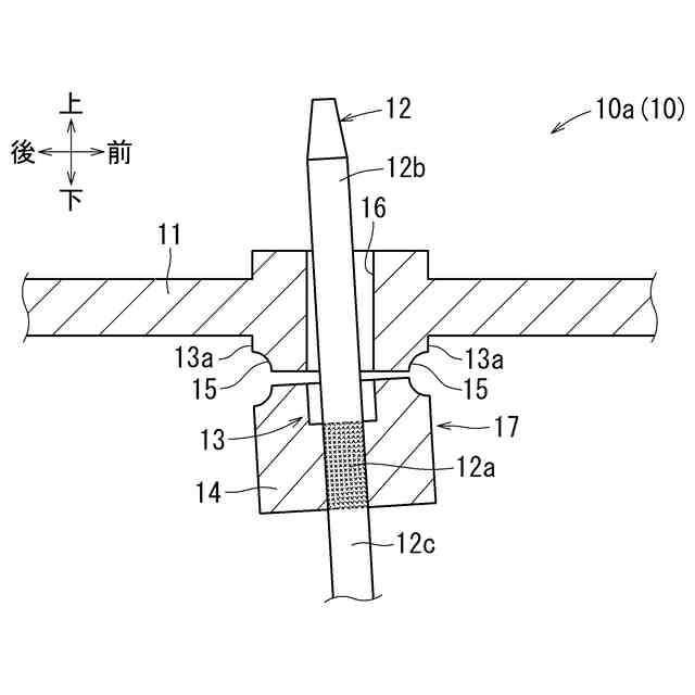 セットプレート10は、面状に延びるプレート部11と、プレート部11に形成されるコネクタ部10aを有する。コネクタ部10aは、燃料ポンプ3に電気信号や電力を送る。コネクタ部10aには、後述のコネクタピン12が設けられる。本実施形態のセットプレート10は、以下詳述する構成によりコネクタ部10aをセットプレート10から折り取ることで、コネクタピン12を簡便に除去できるものとなっている。