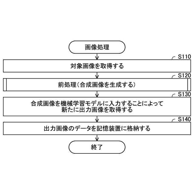 第1の画像と第2の画像を合成することによって、第3の画像を生成する。訓練済の機械学習モデルに第3の画像を含む情報を入力することによって、新たな画像を取得する。ここで、以下の態様が採用されてよい。すなわち、オブジェクトを表す対象画像を取得する。オブジェクトの輪郭を表す輪郭画像と、輪郭画像よりもオブジェクトの細かい特徴を表す細部画像と、を取得する。輪郭画像と細部画像とを含む複数の画像を合成することによって合成画像を生成する。訓練済の機械学習モデルに合成画像を含む情報を入力することによって、新たな画像を取得する。