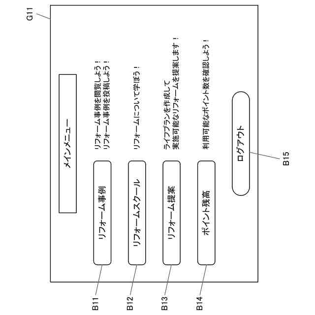 前記表示制御手段は、前記リフォーム提案手段14によって提案されたリフォームのうち、ユーザーによって選択されたリフォームに関するリフォーム事例情報を、前記リフォーム事例記憶手段から抽出して前記ユーザー端末に表示することを特徴とする。