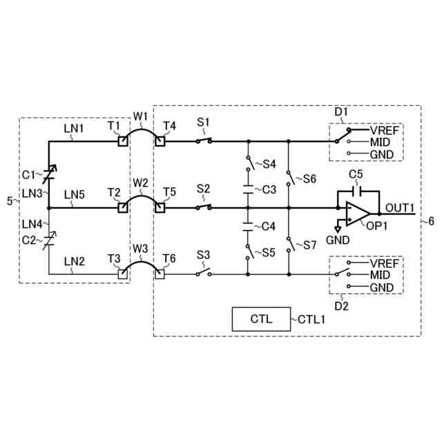 前記第1スイッチと前記第1駆動回路との接続ノードに第1端が接続され、前記第2スイッチと前記検出回路との接続ノードに第2端が接続される第6スイッチと、