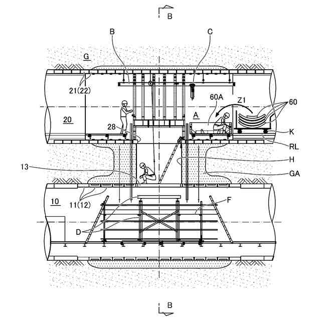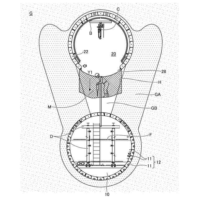 上下や左右の関係にある2つの既設の地下構造体の間を掘削して双方を繋ぐ施工において、その周囲に凍結工法や薬液注入工法、高圧噴射工法等の地盤改良による防護工を行った後に、地盤改良エリアの内側にある未改良エリア(未凍結地盤)の掘削を行い、掘削後に2つの既設の地下構造体を接合する場合がある。この接合に際しては、既設トンネルにおける接合箇所を切り開くことにより、坑口が施工される。