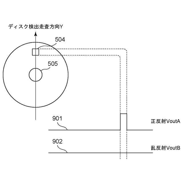 しかしながら、ラベル印刷対応ディスク媒体の印刷エリアは、白色のみではなくカラーの場合がある。そのため、反射型センサを用いて検出した波形を所定の閾値で印刷面を判定しようとするとカラーラベルの下地色によっては反射光量が少なく検知できない場合がある。