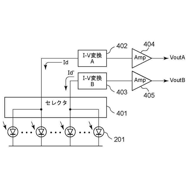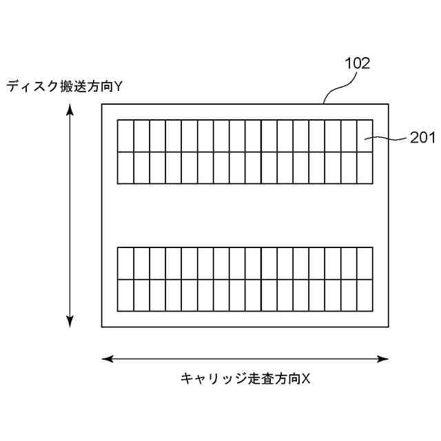 インクカートリッジを格納するキャリッジユニット100内には、複数の受光素子で構成されるマルチセンサ102とLEDから成る発光素子103で構成されるセンサユニット101、プリントヘッド104が具備されている。