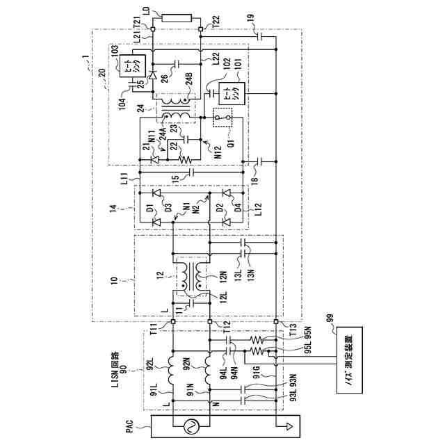 図4は、図1に示した電力変換装置のノイズを測定する回路の一例を表す説明図である。