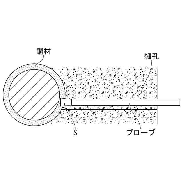 こうしたコンクリート構造物の経年劣化は、浸透した水分の凍結、融解によって生じる亀裂や、塩害による鋼材(鉄筋)の腐食、水酸化カルシウムの消失による中性化によるものが主である。このため、コンクリート構造物の劣化度合いを診断する際には、こうした被検査部分の水分量、塩分濃度、および水酸化カルシウム含有量を測定することが重要である。従来、こうしたコンクリート構造物の経年劣化の診断には、コンクリート構造物の測定箇所に電磁波を照射して、生じた反射波を分析することで劣化度合いを検出するコンクリートの劣化診断装置が一般的に用いられている。