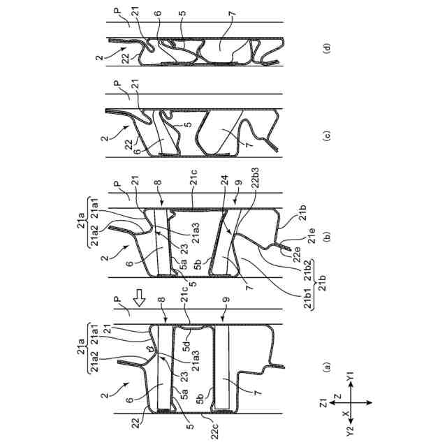 車両の側方からポールなどの障害物に衝突する側突時において、車体側部の構成部分であるサイドシルには大きな衝突エネルギーが入力される。サイドシルから車体内部へのエネルギー伝達は、車体内部の乗員や車載部品に影響を与えるおそれがある。とくに電気自動車(EV)の場合ではサイドシルに対して車幅方向内側に配置されたバッテリーパックに影響を与えるおそれがある。これらの影響を避けるために、サイドシルでエネルギーを吸収する必要がある。