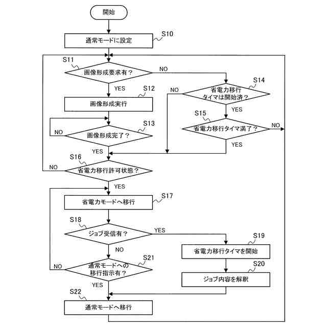 近年、画像形成装置を使用しない場合に、画像形成装置を省電力モードに移行させることで、電力の消費を削減することが行われている。